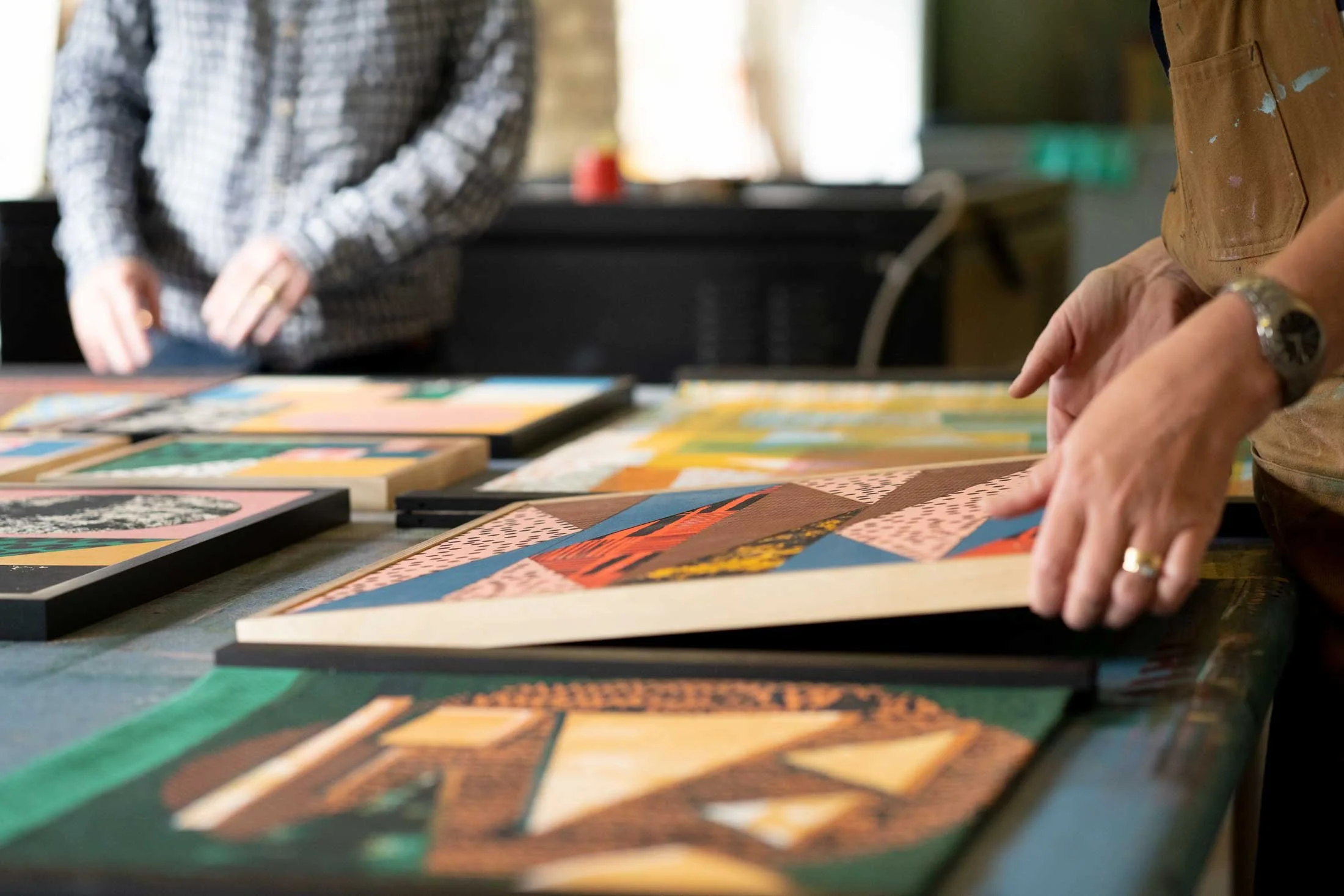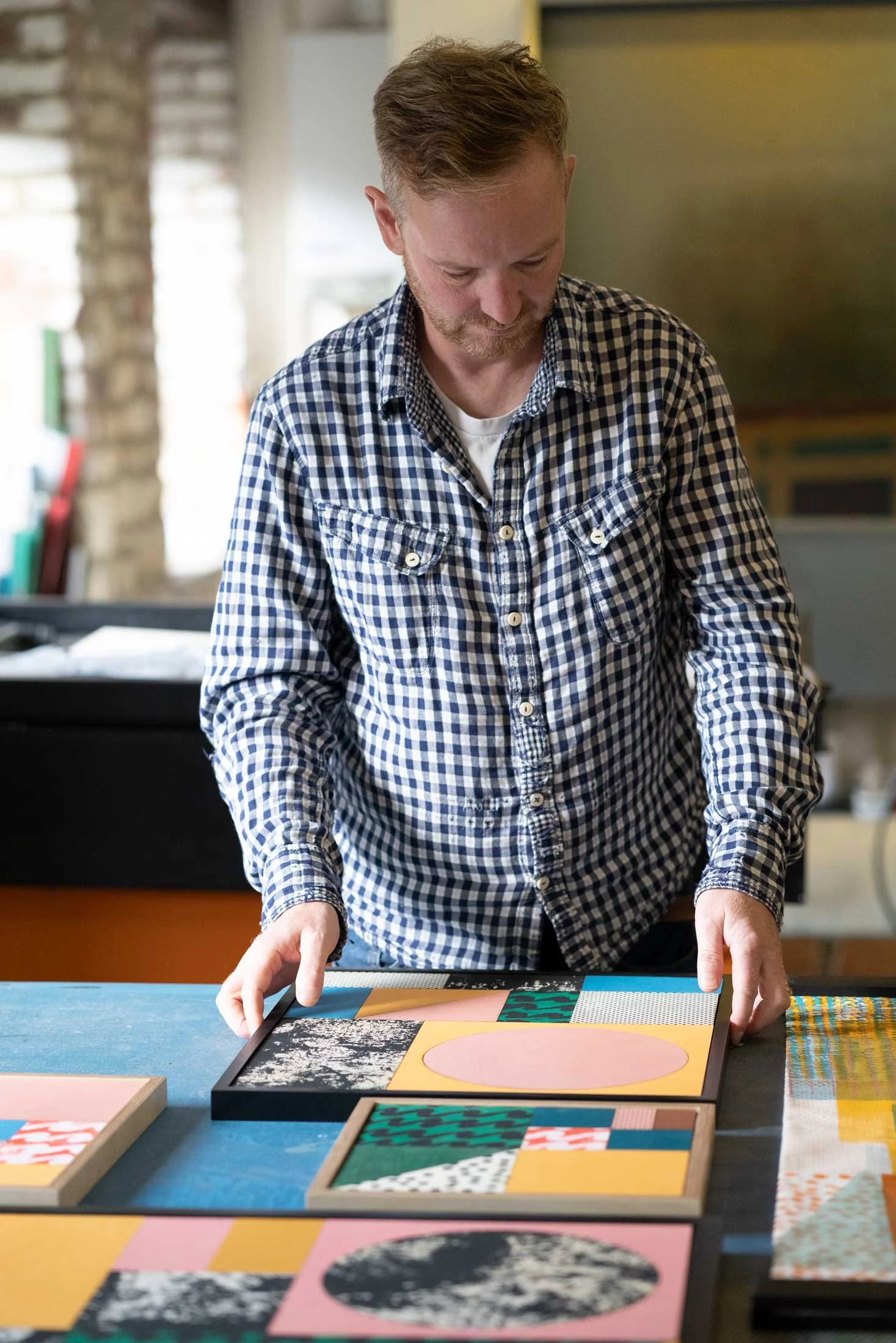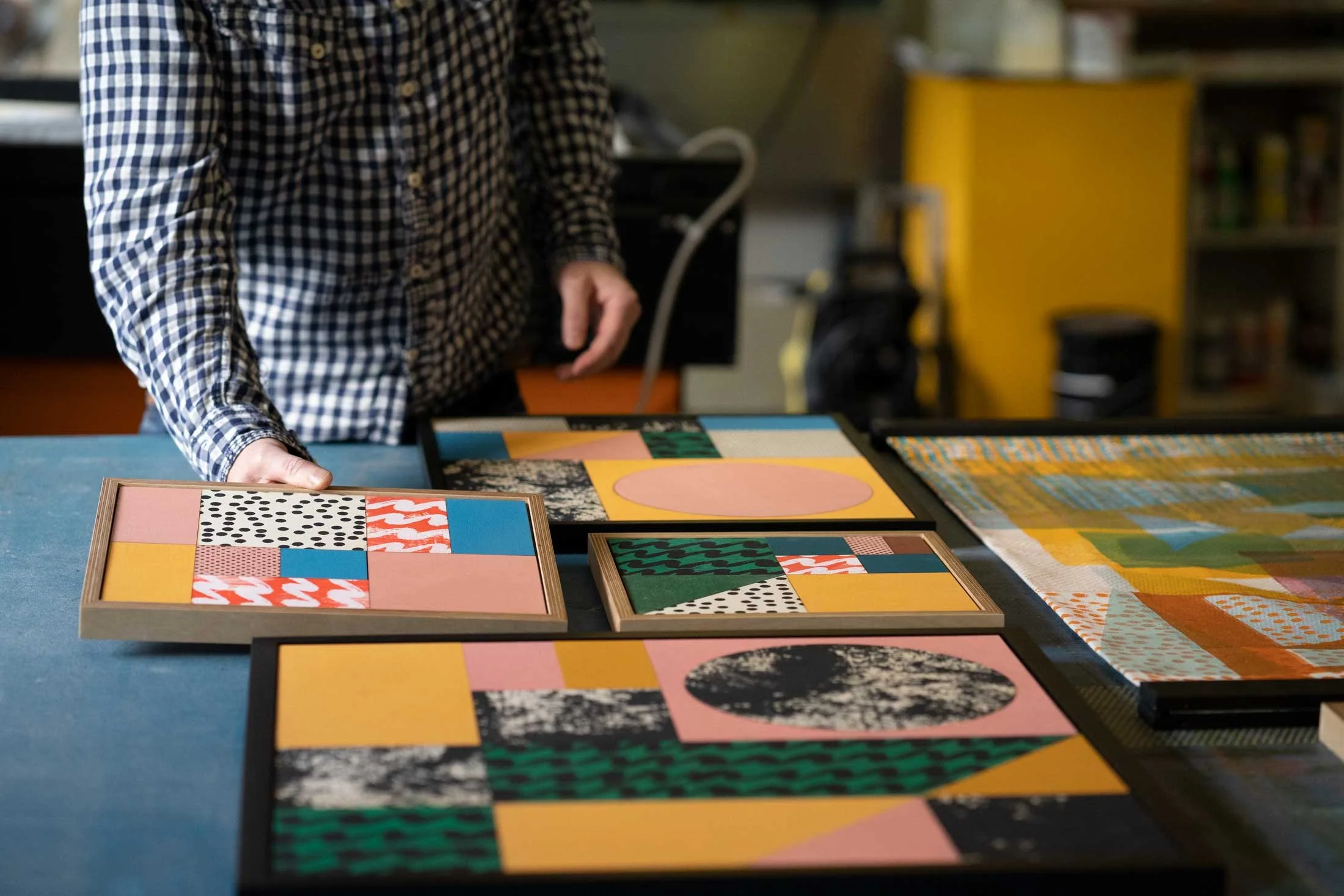 We wanted to create a more affordable way of purchasing versions of our one-off prints. We started experimenting by printing onto large sheets of wood, then cropping down to A4 sizes.